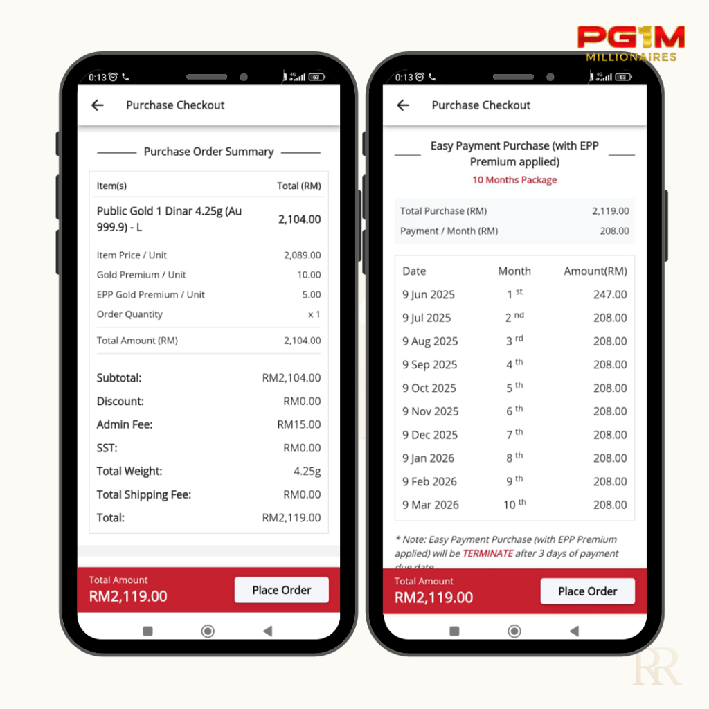 Cara EPP ini, anda beli emas tapi bayar secara ansuran. Anda perlu bayar mengikut jadual yang telah ditetapkan (boleh pilih 6 atau 10 bulan bayaran).