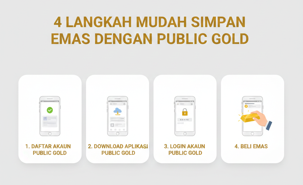 Berikut adalah 4 langkah mudah yang perlu anda lengkapkan untuk mula menyimpan emas Public Gold: