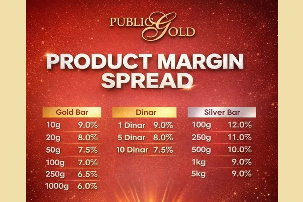 Secara umum, spread emas Public Gold adalah sekitar 6% hingga 9% sahaja. Ini menjadikan Public Gold antara pilihan utama bagi mereka yang serius dalam simpanan emas.